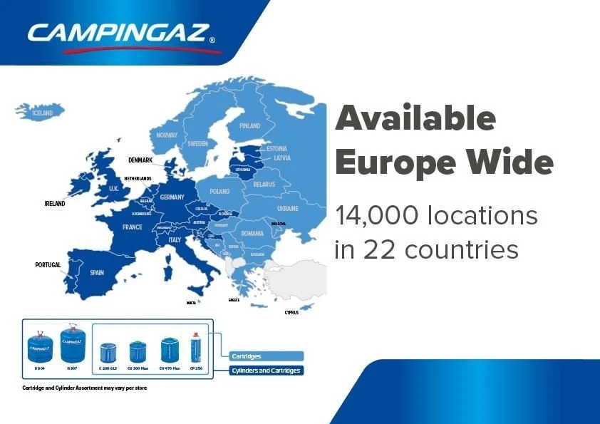 - Runs off Campingaz CV300 Plus and CV470 Plus gas cartridges; nationwide gas supply thanks to our worldwide dealer network in over 50 countries