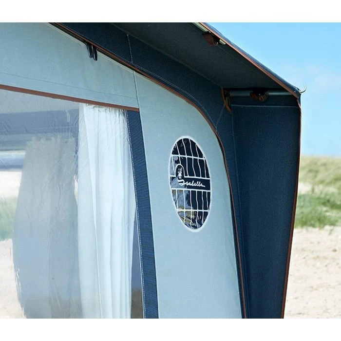 Ventilated, large fly mesh net widows on both side panels with an outside zipped window cover keep unwanted flying insects whilst cooling the awning on hot days and nights.