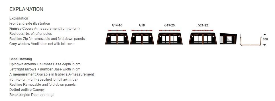 • Optional Extras: Annex 250, door canopy, net side, net front, Cosy Corner II, partition wall, front sun canopy, gutter, storm securing set.Â