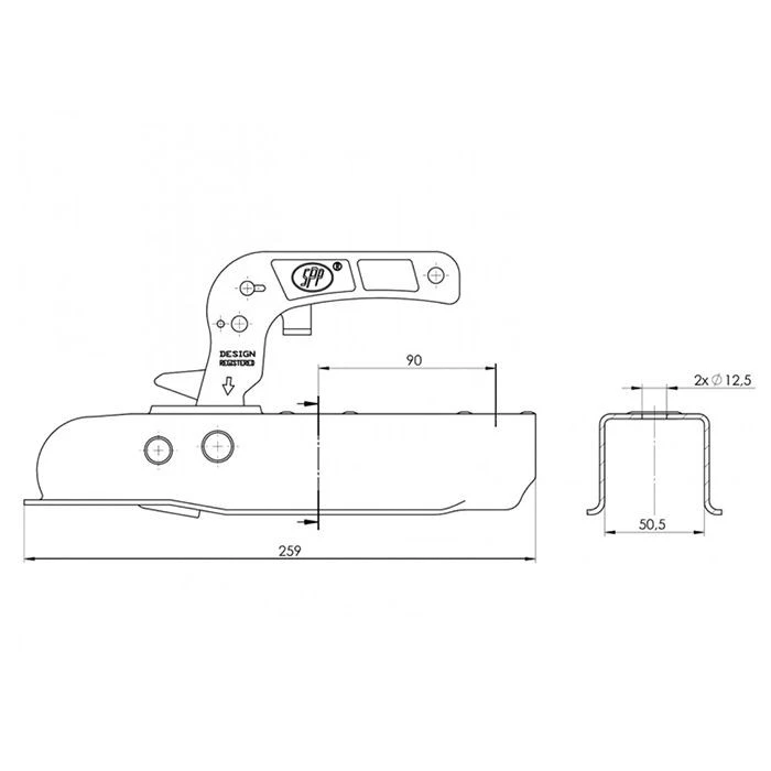 • Suitable for use as a replacement for Knott KQ7K, AL-KO AK7D, Ifor Williams PO0355, Maypole unbraked trailers with 50mm drawbar