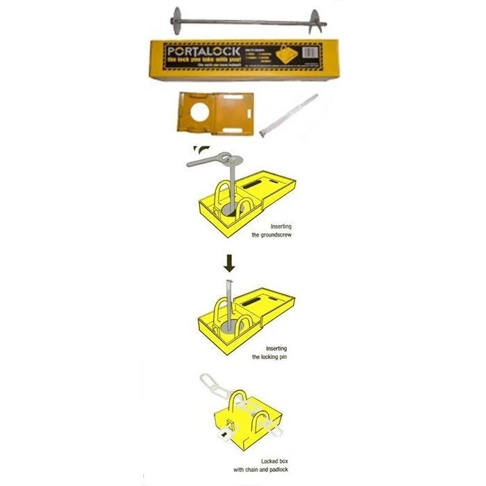 • Once the portalock is in the ground the yellow plate is fixed over the spiral and using a padlock (not supplied) anything can be fixed to the point.