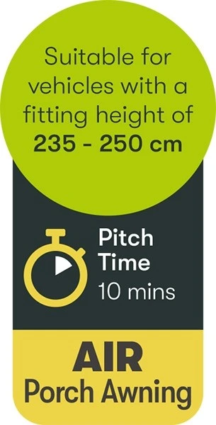 The Falcon Air Porch is a true lightweight air awning. It combines the ease of use of an air porch awning with the added lightweight nature of a true lightweight porch to give you an extremely easy and quick to pitch porch. The awning will fit caravans with a height range between 235 – 250 cm and simply slides into the awning channel on the side of your caravan.