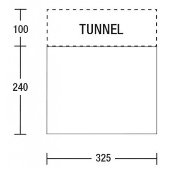 • Floor plan size 325cm width x 340cm depth (incl. tunnel)
